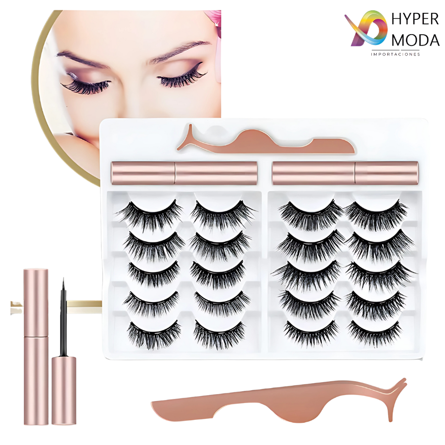 Kit 10 Pestañas magnéticas 3D+delineador